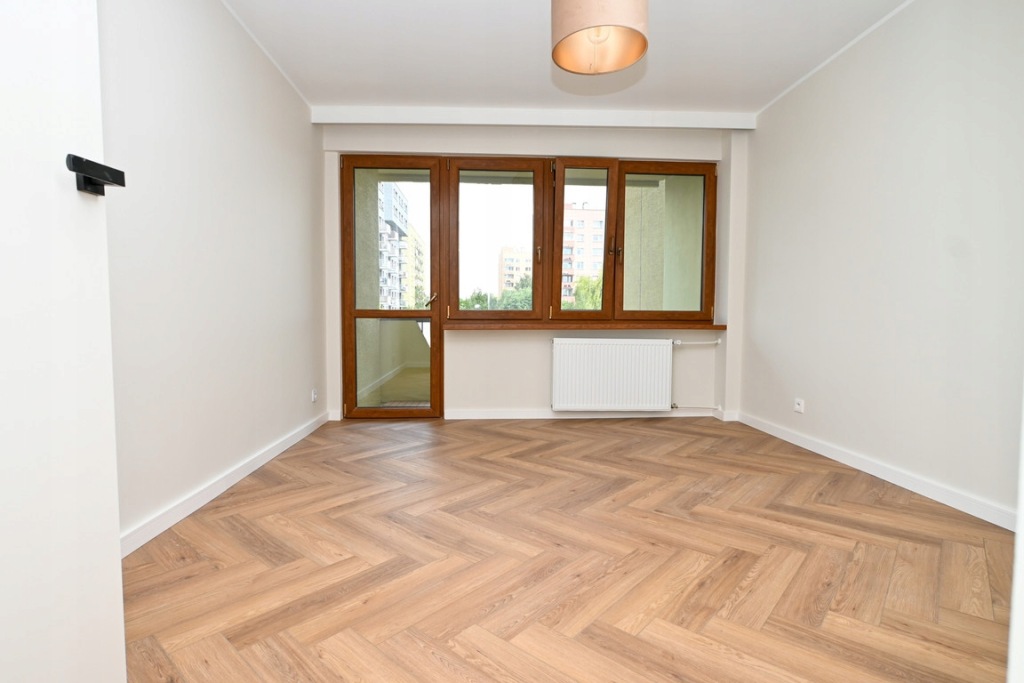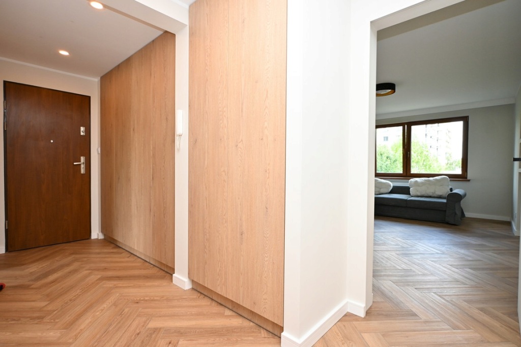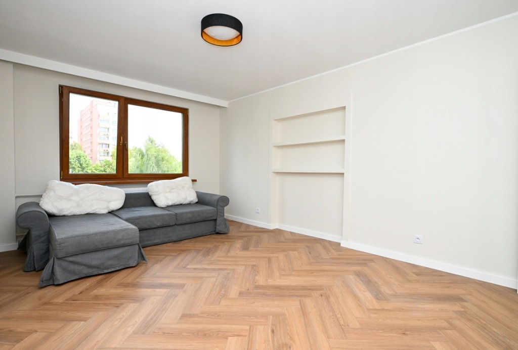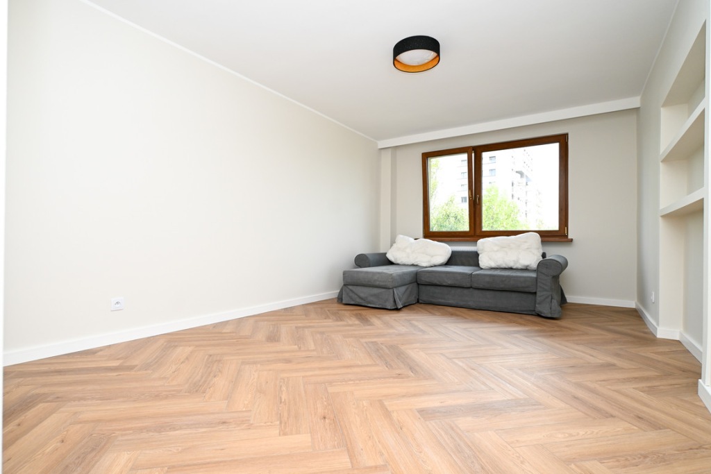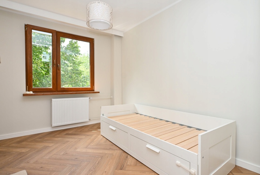 Mieszkanie po generalnym remoncie – na podłogach panele w jodełkę, nowe drzwi, ściany odświeżone, nowoczesna łazienka i toaleta z zabudową meblową. W mieszkaniu dostępna jest tylko kanapa w salonie i łóżko pojedyncze w pokoju dziecięcym – możliwość doposażenia mieszkania według potrzeb najemcy. W najbliższym czasie zostaną powieszone zasłony w oknach.