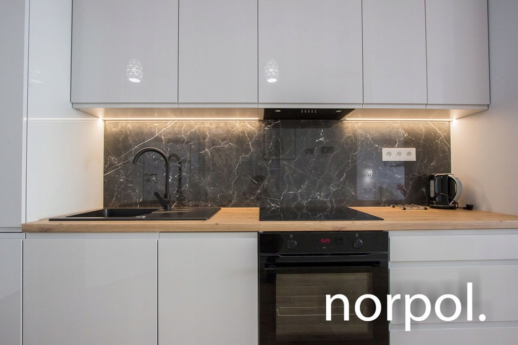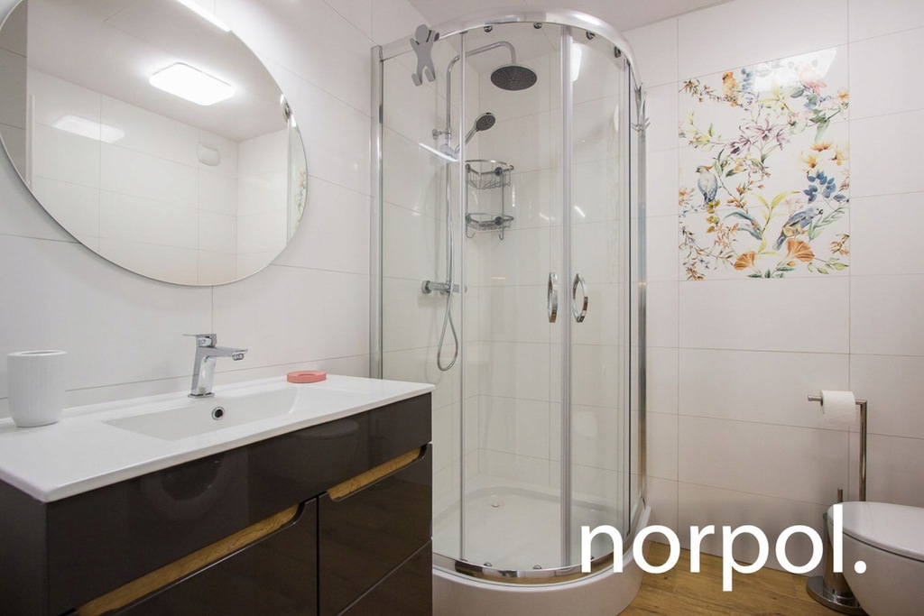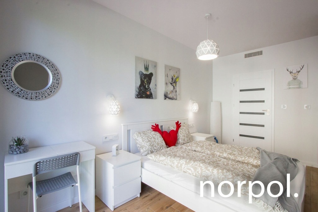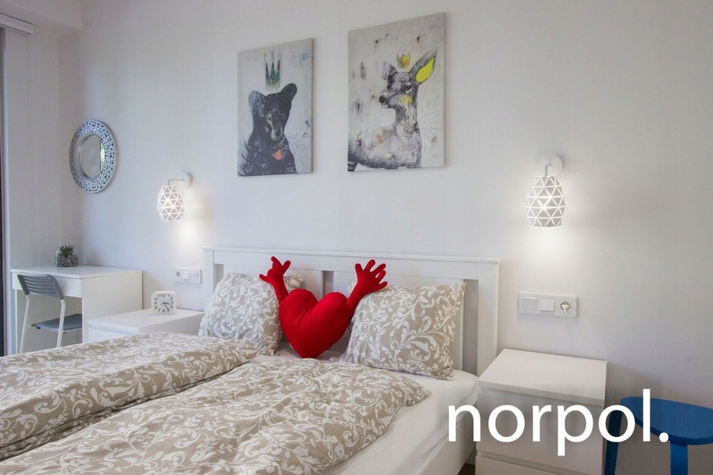 Mieszkanie znajduje się na pierwszym piętrze i posiada duży balkon. Składa się z dużego pokoju z aneksem kuchennym, sypialni z garderobą, łazienki oraz przedpokoju. Mieszkanie jest w pełni umeblowane i wyposażone posiada klimatyzację, ogrzewanie podłogowe oraz wideo-domofon. Za dodatkową opłatą dostępne jest miejsce parkingowe w garażu podziemnym.