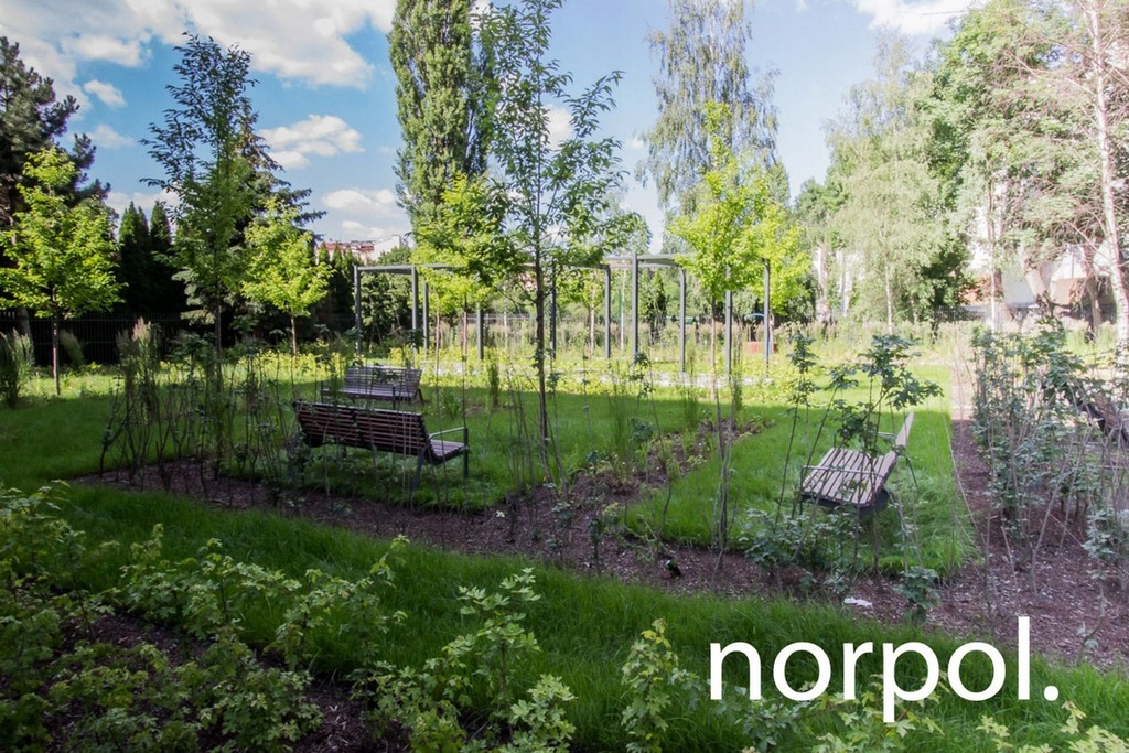 Budynek posiada recepcję czynną 24/7, prywatny ogród dostępny dla mieszkańców, parking podziemny i inne udogodnienia dla mieszkańców.