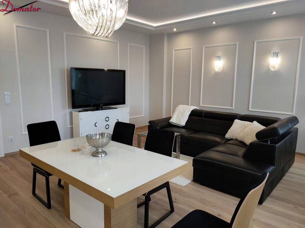 Mieszkanie stylowo urządzone i wyposażone w sprzęt i meble wysokiej jakości. Meble i wyposażenie nowe, jeszcze nie używane. W przedpokoju i sypialni pojemne szafy.
