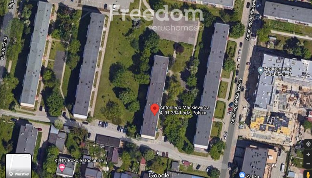 For rent a cozy two-room apartment Łódź Bałuty on ul. Mackiewicza 4 in Łódź. The apartment is located on the 4th floor in a low block. It consists of a living room with access to a large balcony, a bedroom, a fully equipped bright kitchen, a bathroom with toilet and a hall with a total area of 38m2. Additionally, a basement. The whole thing is furnished and equipped so that the future tenant does not have to worry about anything. The advantage of the apartment is its location surrounded by lush greenery, a block in a fenced, monitored complex with parking for residents. Great location, close to Manufaktura in the immediate vicinity of a school, grocery stores, service points and restaurants. The rent is 1650 plus about 400 PLN in fees. Deposit 3300 PLN. Occasional and long-term rental only. Rental without animals. Due to the occasional rental, the offer is addressed only to people with Polish citizenship.<br/><br/> Offer details: Freedom Nieruchomości ul.Wojska Polskiego 23b -Ewa Błaszczyk tel. 728 874 066<br/> Agreement with a tenant based on a brokerage agreement.<br/> If you are unable to contact us by phone, please send an SMS message and we will call you back as soon as possible.<br/><br/> I cordially invite you to contact me and for a presentation.<br/><br/> Secure transaction through FREEDOM NIERUCHOMOŚCI:<br/><br/> - free assistance in obtaining the most advantageous mortgage loan on the market,<br/><br/> - preferential terms of fees and appointments with the Notary,<br/><br/> - full security of purchase and sale based on PZU third party liability insurance,<br/><br/> - comprehensive agent support throughout the entire transaction process.<br/><br/><br/><br/> Offer details: Freedom Nieruchomości ul.Wojska Polskiego 23b -Ewa Błaszczyk tel. 728 874 066<br/> If you are unable to contact us by phone, please send an SMS message and we will call you back as soon as possible.