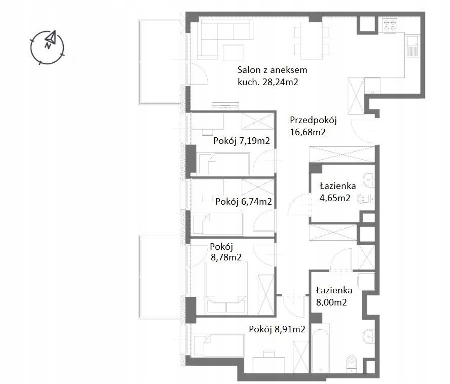 - Powierzchnia użytkowa: 88.94 m²