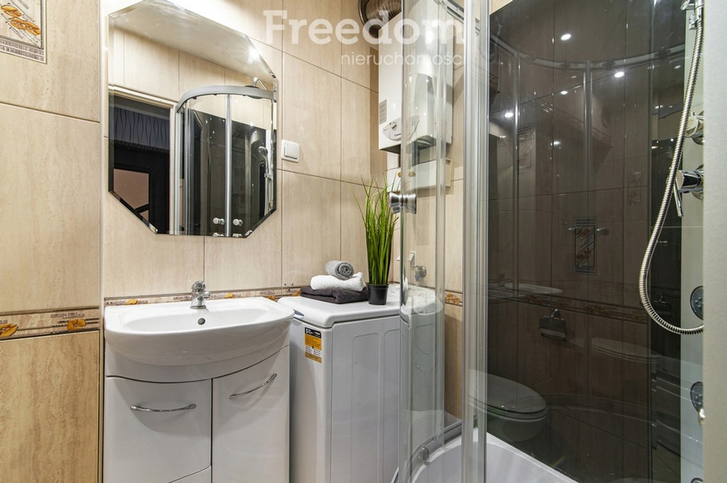 łazienka z nową kabiną prysznicową, umywalką i toaletą. Mieszkanie znajduje się na parterze w 4 piętrowym bloku.
