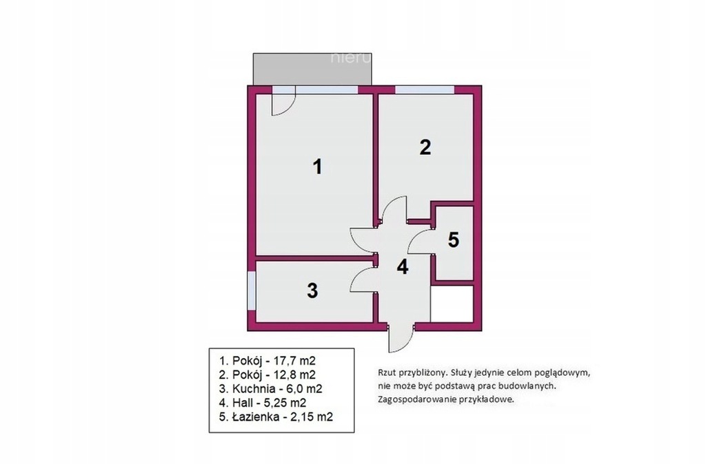 W środku znajdziesz 2 duże pokoje ( ok. 17m2 i 12m2),