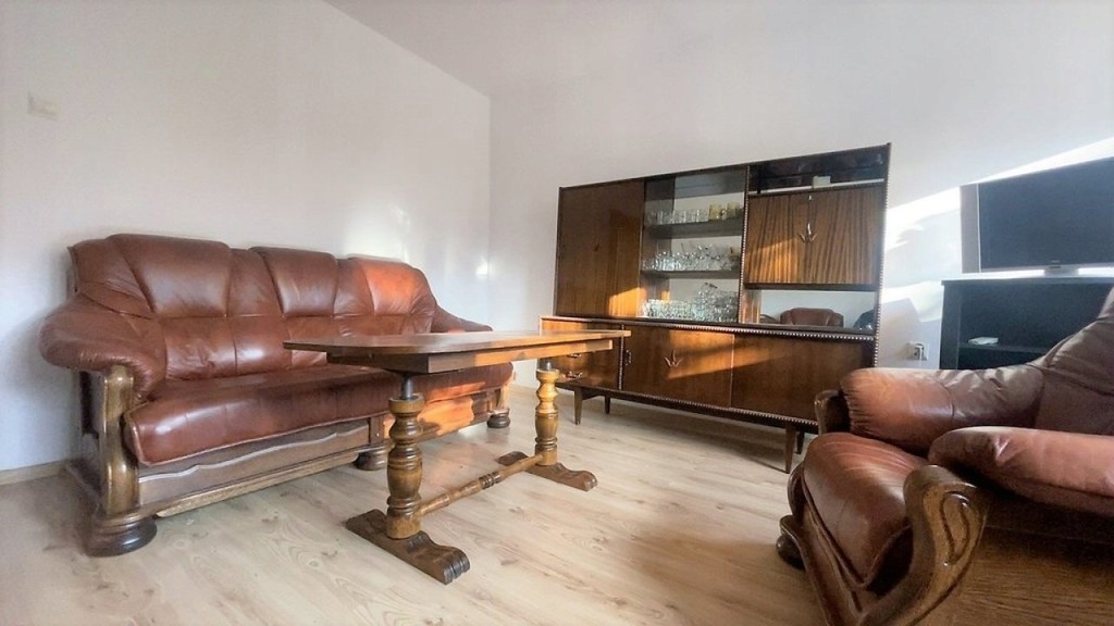 Mieszkanie znajduje się na pierwszym piętrze w 4-piętrowym bloku. Jest umeblowane, bardzo słoneczne i ciepłe. Składa się z 2 pokoi, kuchni, łazienki i przedpokoju.