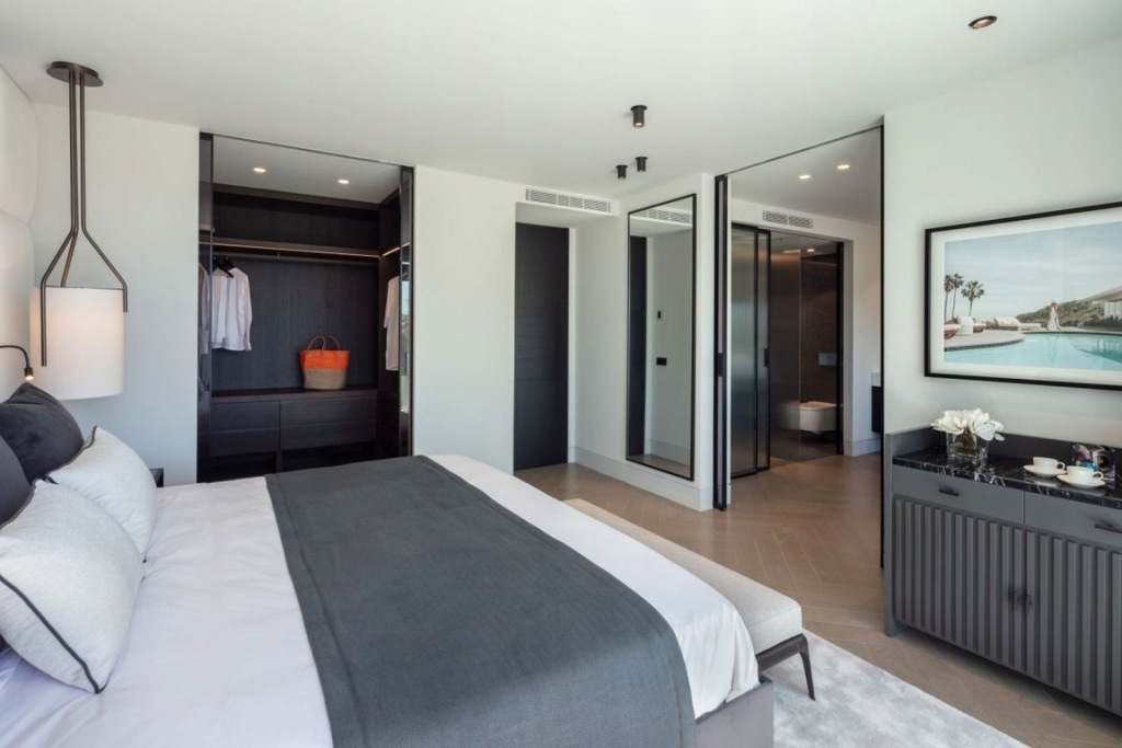 Na pierwszym piętrze mieszczą się dwie przestronne sypialnie, w tym główna sypialnia. Wyposażona w duże szafy oraz łazienkę z prysznicem typu walk-in i wanną, oferuje widoki na Morze Śródziemne, które można podziwiać podczas kąpieli. Dodatkowa sypialnia również ma własną łazienkę oraz widok na ogrody Puente Romano.