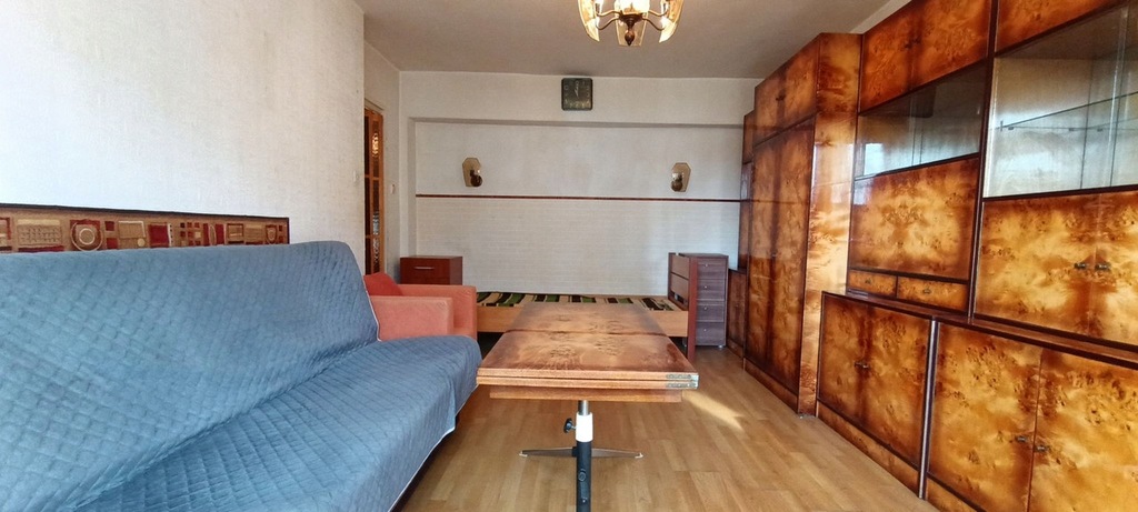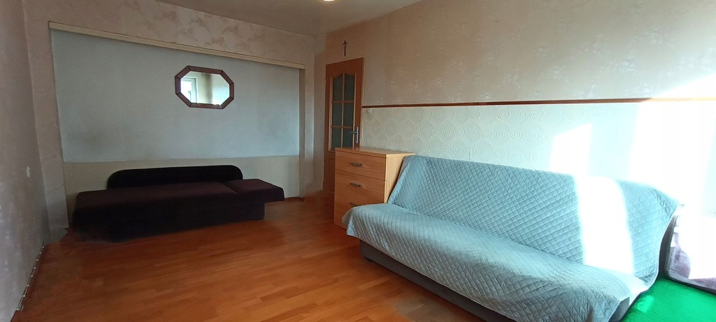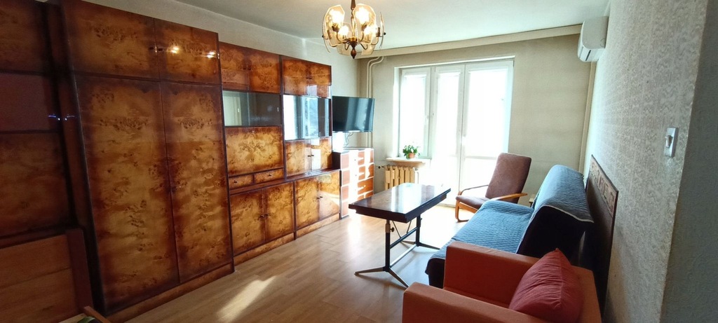 Okna PCV. Stan techniczny mieszkania jest dobry; mieszkanie środkowe, słoneczne, kuchnia w umeblowaniu, na podłodze w kuchni i przedpokoju gumolit, w pokojach panele, natomiast w łazience terakota. W przedpokoju znajduje się zabudowa w postaci szaf wnękowych. W pokoju dziennym zainstalowana została klimatyzacja oraz znajduje się wyjście na balkon.