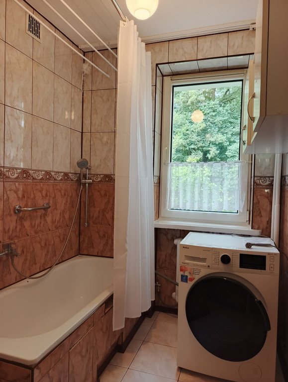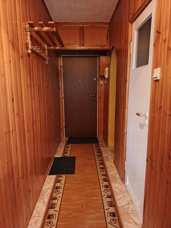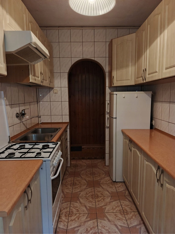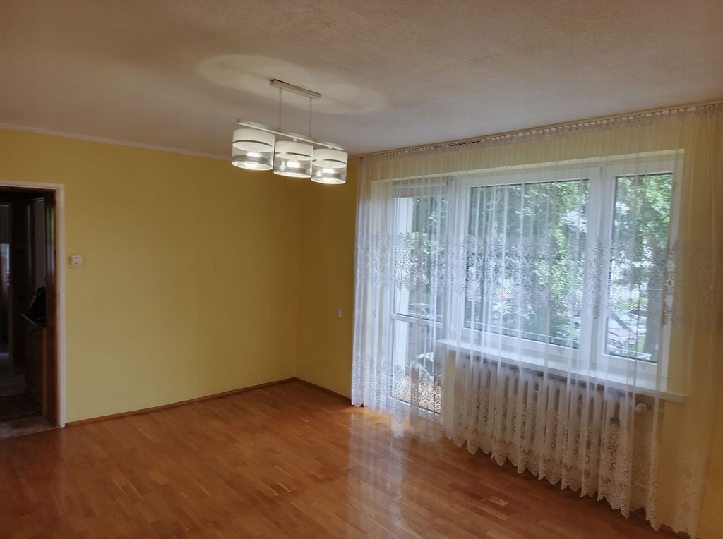 Okna PCV, na podłodze w kuchni, przedpokoju, łazience i w.c. - terakota, natomiast w pokojach klepka podłogowa, w małym pokoju znajduje się szafa wnękowa; ponadto w cenie sprzedaży mieszkania pozostają: pralka Amica, lodówka Electrolux, kuchenka gazowa Amica, okap Amica oraz meble kuchenne. Stan techniczny mieszkania – dobry.