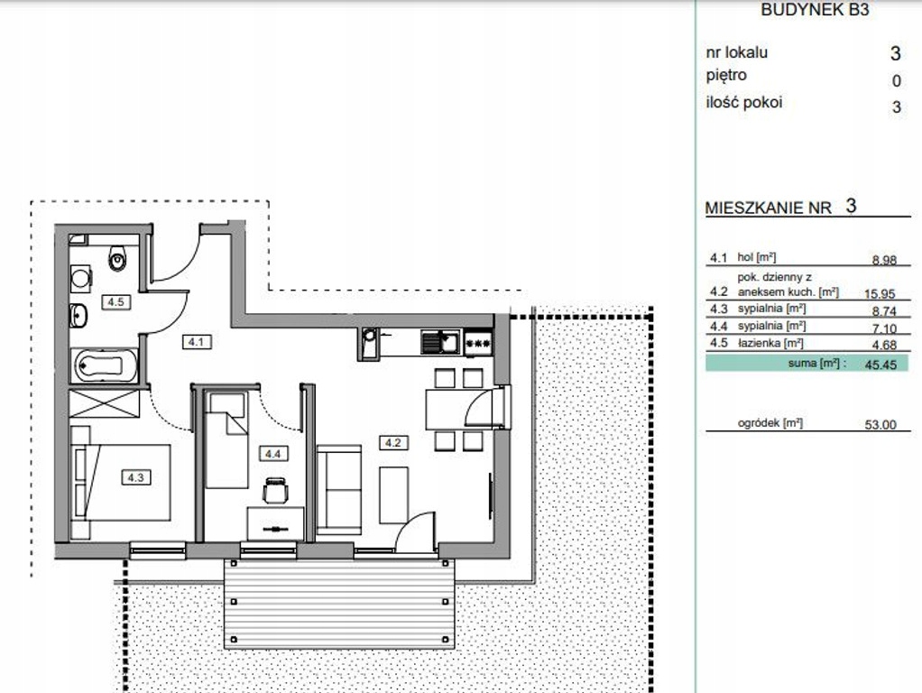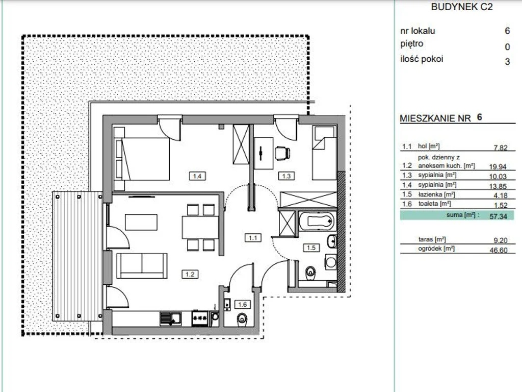 NOWE MIESZKANIE 3 pokojowe 57,34m2 z ogrodem 47m2 i tarasem 10m2!!!