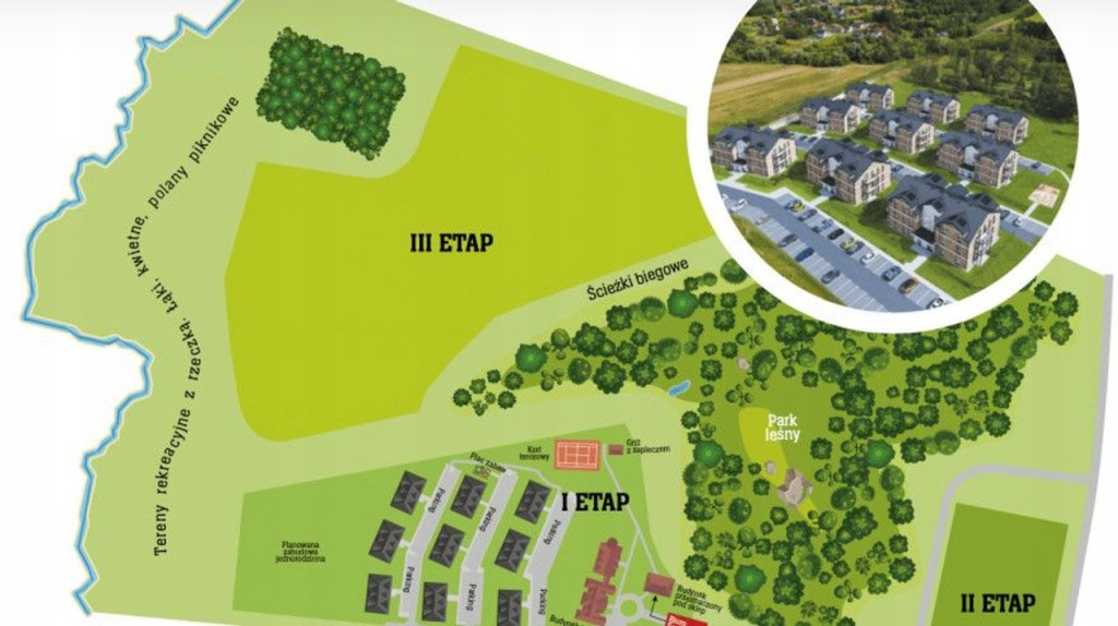 W kolejnych etapach inwestycji przewidziano lokale usługowe, sklep ,przedszkola, oraz kort tenisowy.