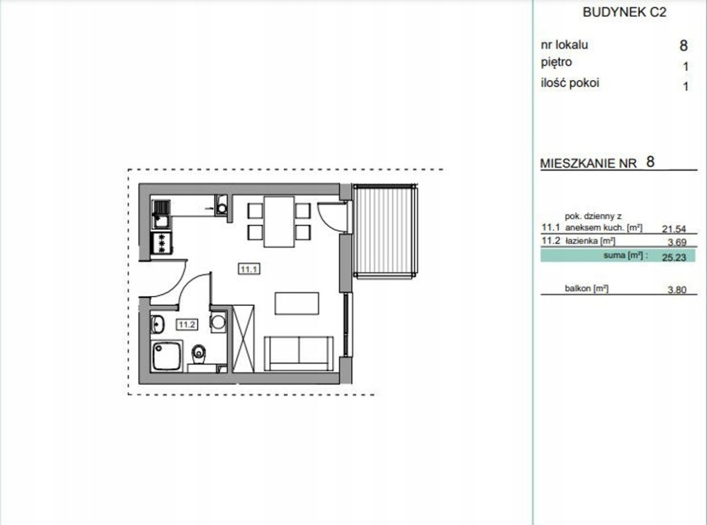 - Powierzchnia użytkowa: 25.23 m²