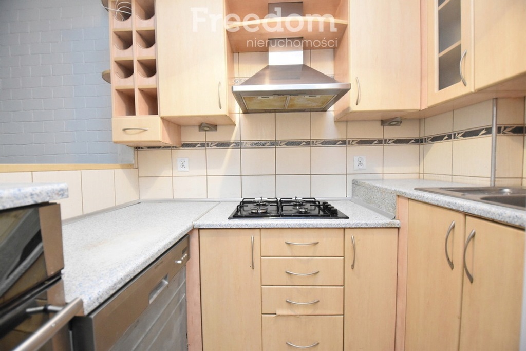 - w pełni wyposażonej kuchni o pow. około 4 m2 w której dla nowych najemców znajdują się sprzęty AGD tj. lodówka, płyta gazowa, piekarnik, okap oraz zmywarka