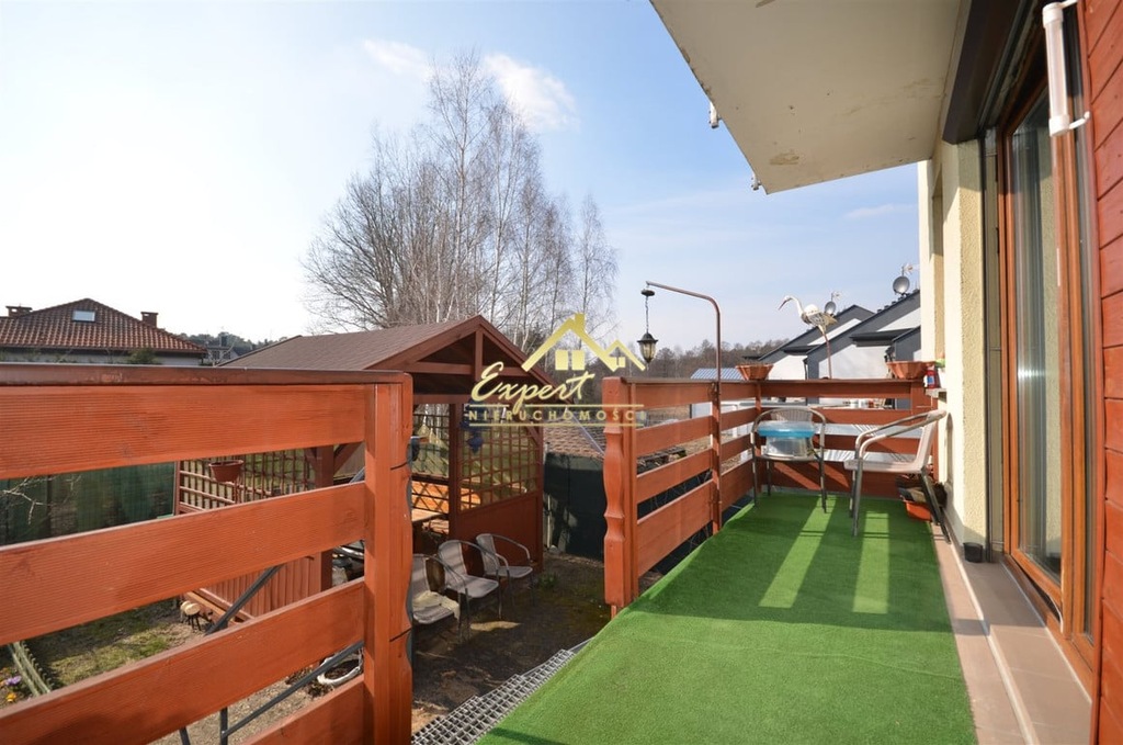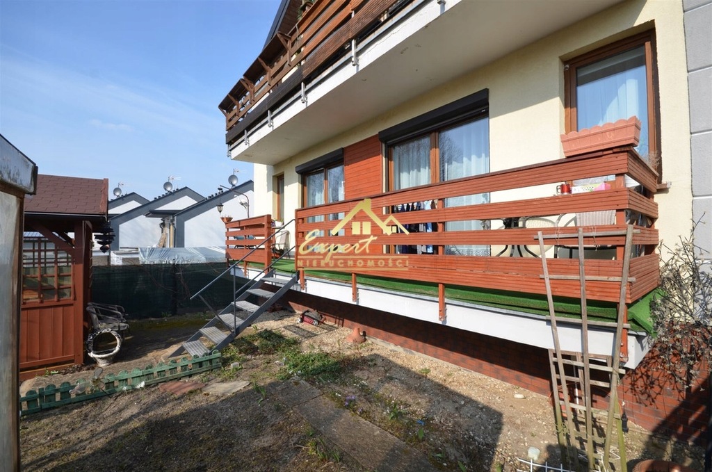 Mieszkanie usytuowane na wysokim parterze w budynku składa się z salonu z jadalnią i aneksem kuchennym z wyspą , dwóch sypialni, przedpokoju i łazienki. Z salonu wyjście na taras i własny ogródek w którym znajduje się mała szklarnia oraz drewniana altana . Mieszkanie ciepłe i słoneczne.