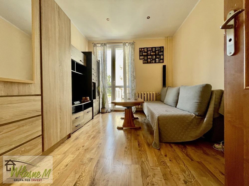 Pokój dzienny jest bardzo ustawny, z dużym oknem. Do sypialni wchodzimy z kuchni.