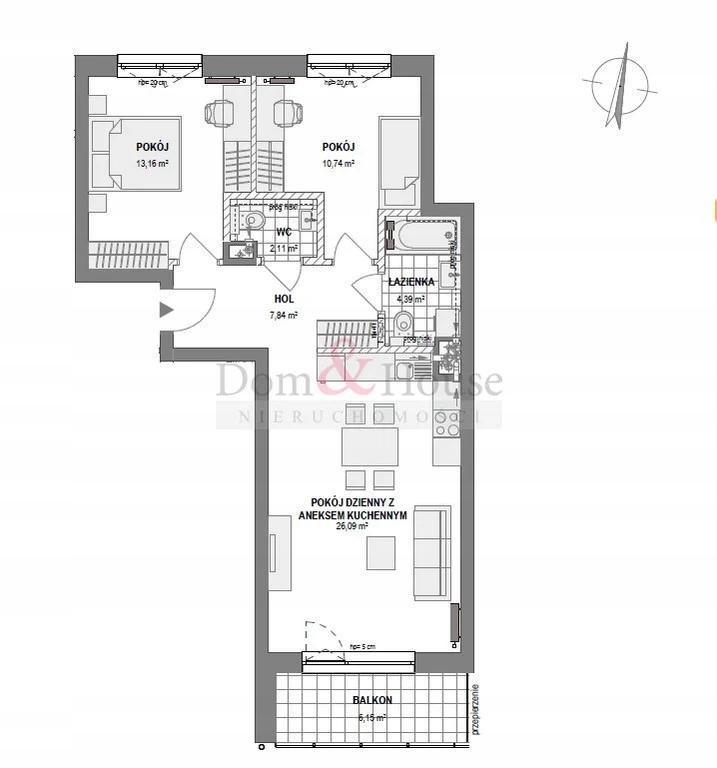 - Przestronny pokój dzienny z aneksem kuchennym - 26,09 m²