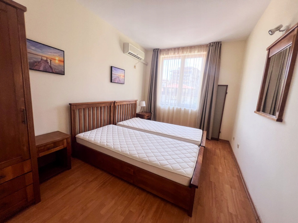 IBG Real Estates ma przyjemność zaoferować w pełni umeblowane mieszkanie z 2 sypialniami, położone na 4 piętrze w nadmorskim kompleksie Garden of Eden. Kompleks znajduje się w pierwszej linii plaży w Świętym Własie, z widokiem na starożytne miasto Nesebyr. Garden of Eden to wyjątkowy kompleks o dużej powierzchni, składający się z 5-gwiazdkowego hotelu i luksusowych apartamentów; 7 (siedem) odkrytych basenów, kryty basen z podgrzewaną wodą, SIŁOWNIA, SPA, 3 restauracje, piękne ogrody i tereny zielone z alejkami prowadzącymi do pięknej, piaszczystej plaży, bezpłatny parking podziemny dla właścicieli i wiele więcej.