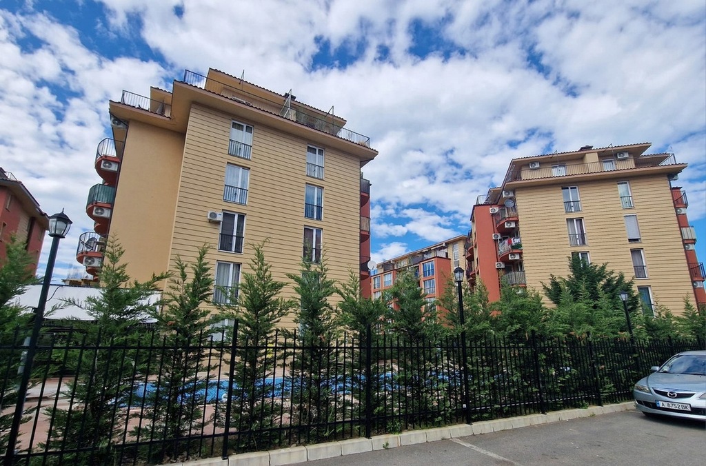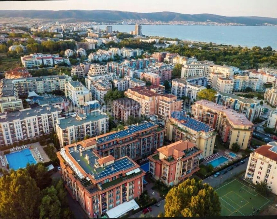 Oferujemy na sprzedaż umeblowaną kawalerkę w ogrodzonym kompleksie Sunny View Central, położonym w południowej części kurortu Słoneczny Brzeg. W odległości 650 metrów znajduję się piaszczyste plaża, a centrum kurortu 2,5 km. Blisko kompleksu znajduję się infrastruktura miejska i komunikacyjna. Stare Miasto Nessebar - 2 km, lotnisko w Burgas -25 km.