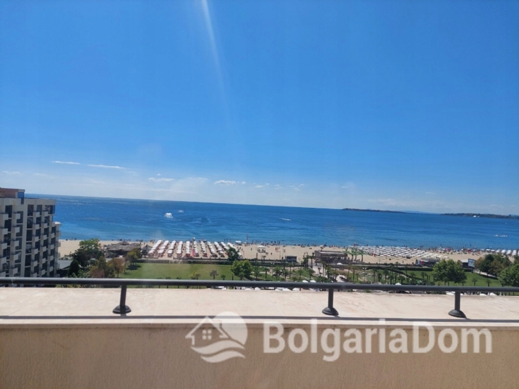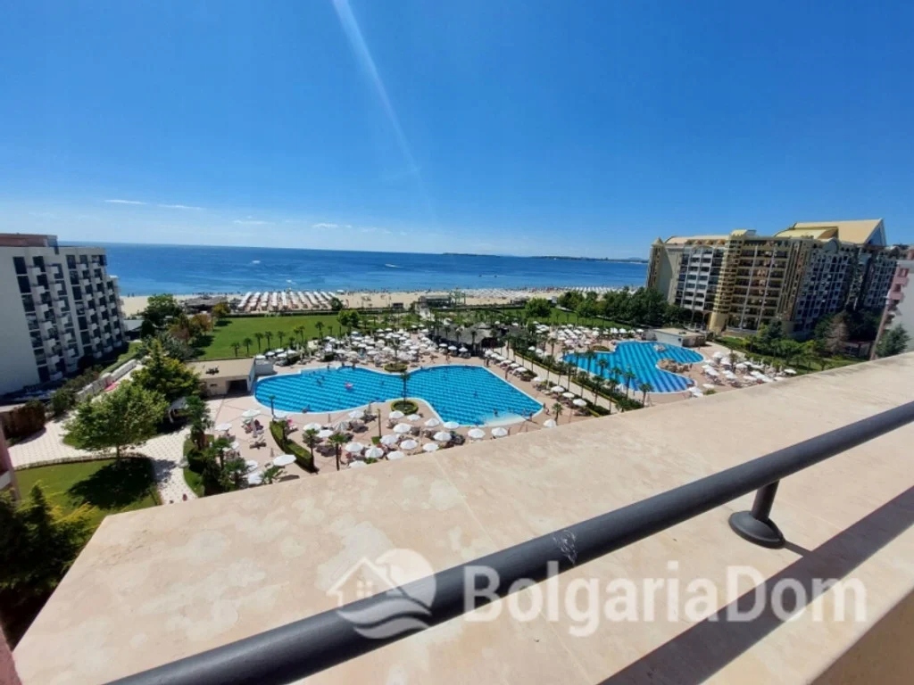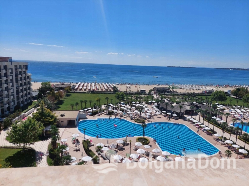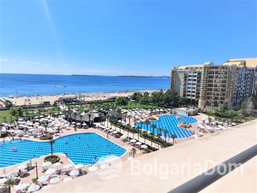 Oferujemy na sprzedaż doskonałą kawalerkę z wyjątkowym, panoramicznym widokiem na morze w luksusowym aparthotelu w pierwszej linii, 50 metrów od plaży w kurorcie Słoneczny Brzeg.