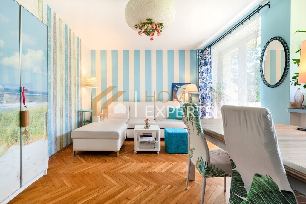 To ustawne lokum o powierzchni 50.30m² znajduje się na parterze 6-piętrowego budynku z 1960 roku. Mieszkanie składa się z