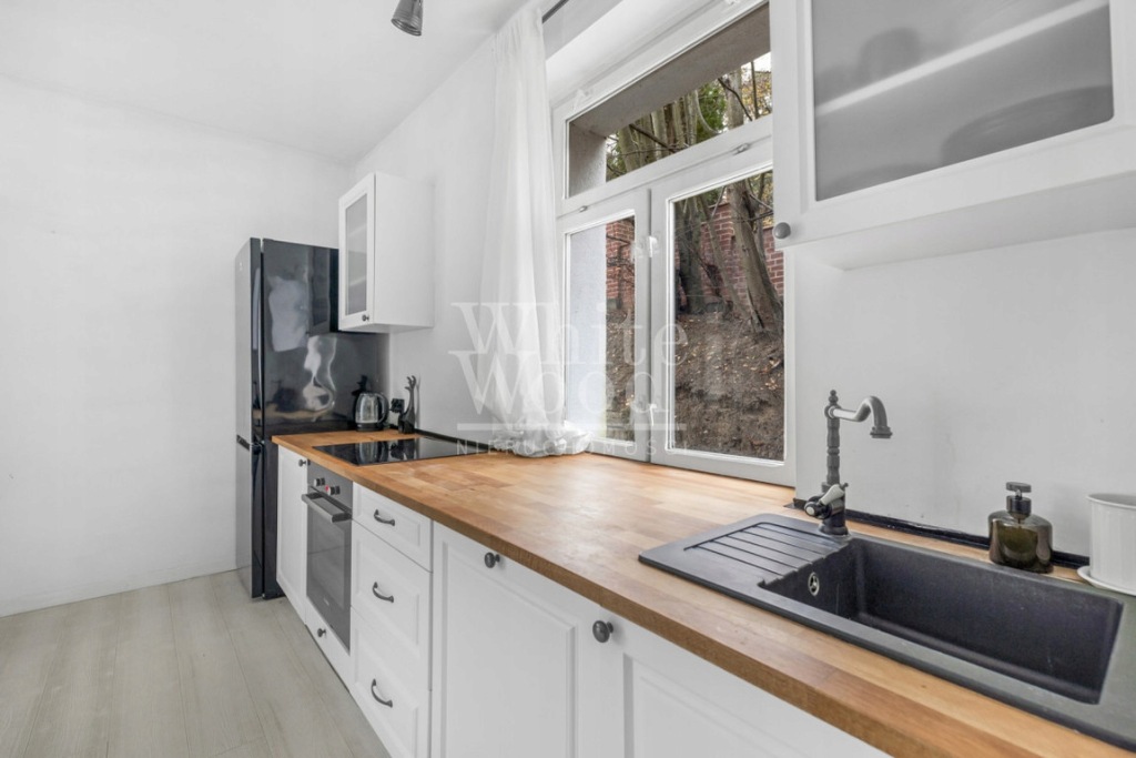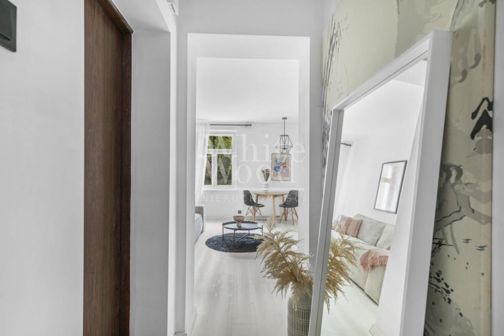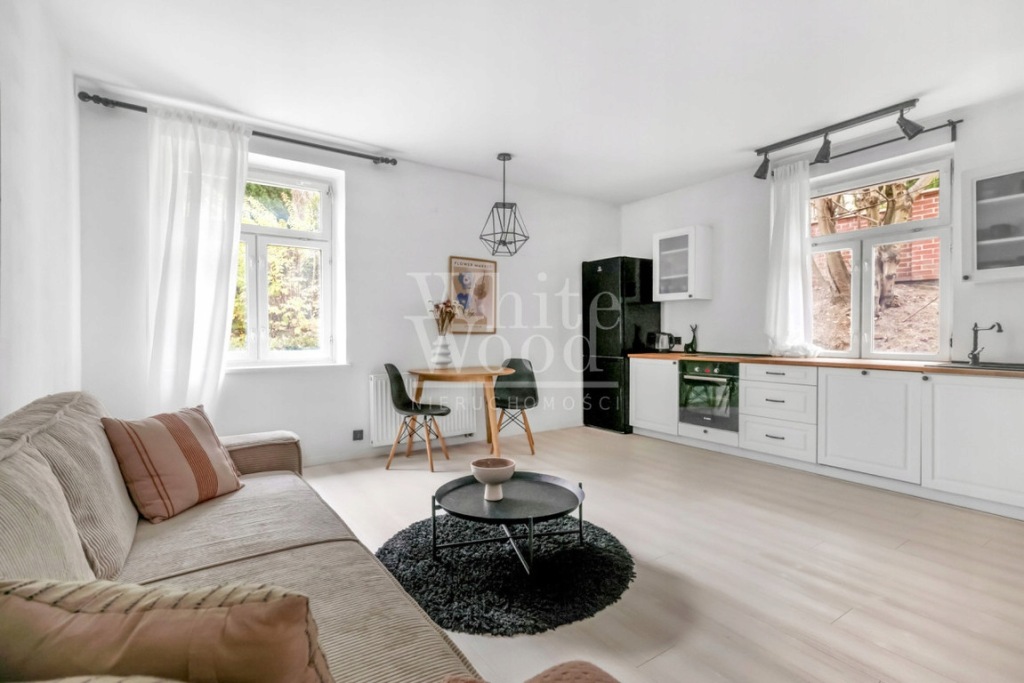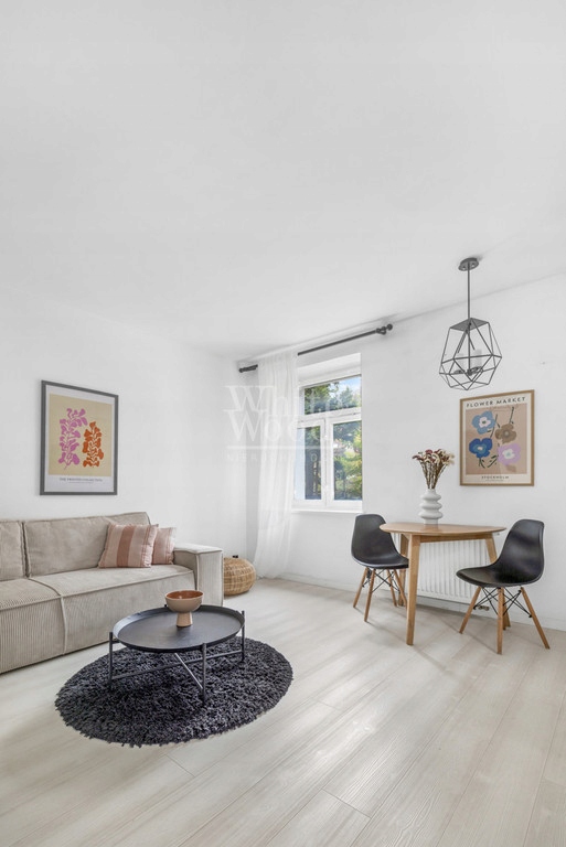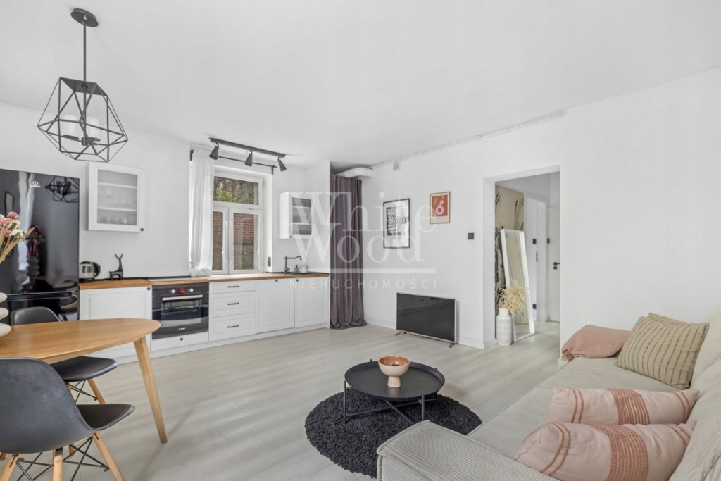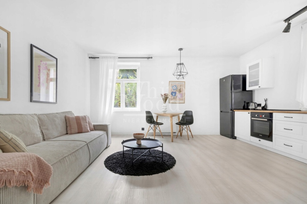 Dwupokojowe mieszkanie na półpiętrze budynku z lat 40., po generalnym remoncie w 2016 roku (wymiana instalacji, odnowienie kuchni i łazienki, nowe panele). W 2022 roku odświeżono wnętrze i przeprowadzono modernizację budynku (izolacja, elewacja, klatka schodowa). Na 37,9 m2 składa się salon z aneksem kuchennym - funkcjonalny, w pełni wyposażony (sprzęt BOSCH, INDESIT). Jasna, przytulna i komfortowa sypialnia oraz