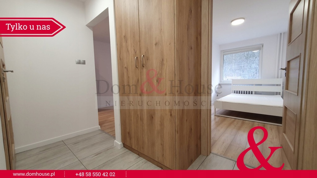 Lokal z dużymi oknami, wychodzącymi na las. Wysoki parter. Całość po gruntownym remoncie. Pokój dzienny połączony z wyposażonym aneksem kuchennym, oddzielna sypialnia, łazienka z kabiną prysznicową i pralką. W korytarzu znajduje się duża szafa ubraniowa. Okolica bardzo spokojna, wokół wiele miejsc spacerowych. Dogodny dostęp do Wydziału Ekonomicznego Uniwersytetu Gdańskiego. Wokół budynku wiele miejsc postojowych. Ogrzewanie i ciepła woda z sieci miejskiej. Do lokalu przynależy piwnica. Opłaty eksploatacyjne ok 700 zł/mc.