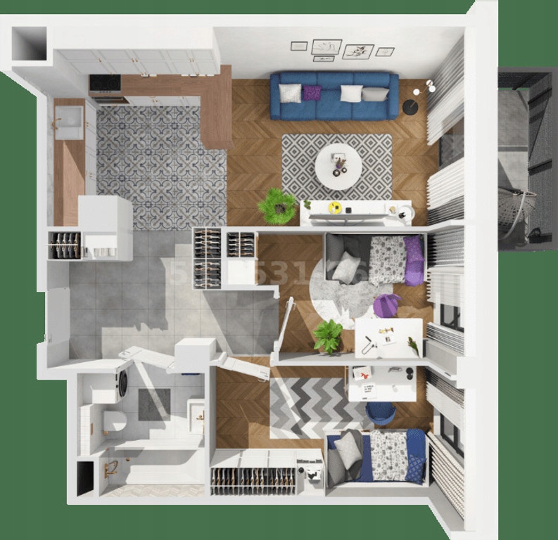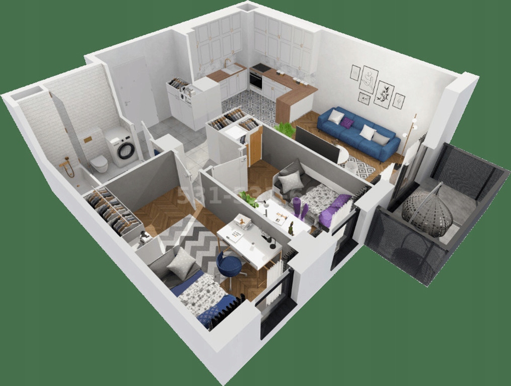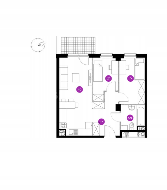 * Nieruchomość składa się z salonu z aneksem oraz 2 sypialni, holu, łazienki z WC,