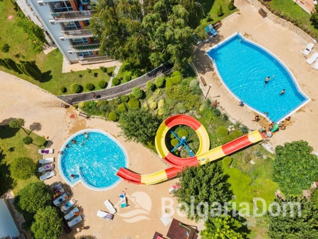 Na terenie kompleksu znajduje się ogromny teren parkowy o niepowtarzalnym krajobrazie. Infrastruktura: dwie restauracje, kawiarnia, bar, sala fitness, sklepy, sauna, klub internetowy, spa, klub dla dzieci, salon kosmetyczny, gabinet masażu, gabinet lekarski, biuro podróży, wypożyczalnia samochodów, place zabaw, baseny i zjeżdżalnie, boiska sportowe, minigolf, tenis, klub gier. Parking. Bezpieczeństwo.