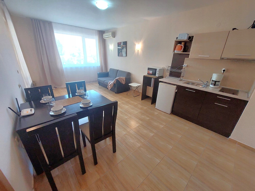 Z przyjemnością oferujemy umeblowany apartament z jedną sypialnią, położony na 2. piętrze w kompleksie Magic Dreams. Kompleks znajduje się w spokojnej okolicy, pomiędzy kurortami Słoneczny Brzeg i St. Vlas, 300 metrów od morza i pięknej piaszczystej plaży. Magic Dreams to fantastyczny ogrodzony kompleks obejmujący duży teren i oferujący 2 duże baseny z częścią dla dzieci, położone wśród terenów zielonych, restaurację, recepcję, SPA, przestronny hol, plac zabaw i wiele więcej.
