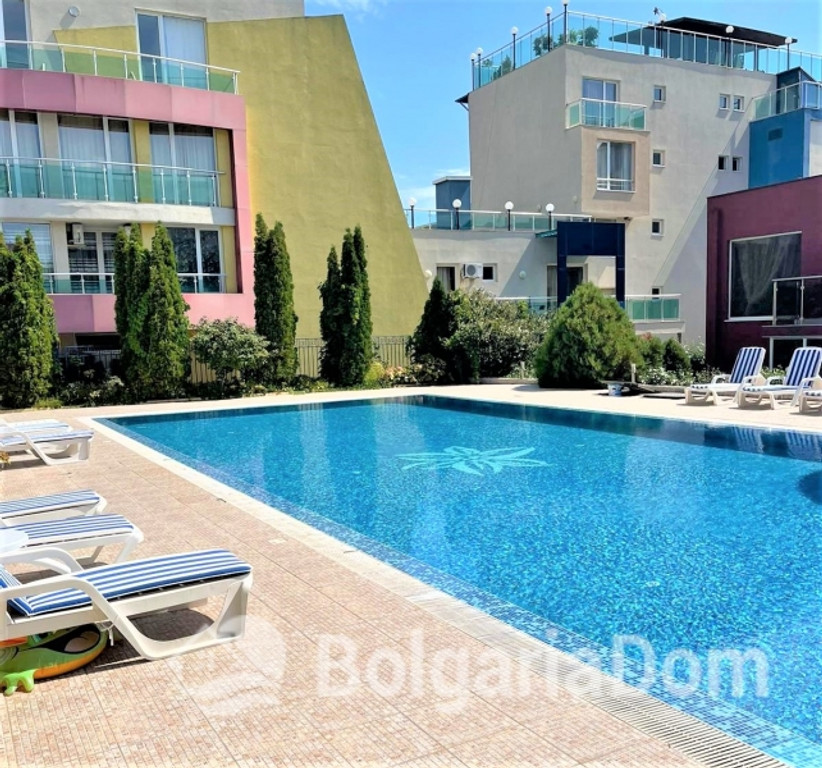 Oferujemy na sprzedaż przestronne dwupokojowe mieszkanie z pięknym widokiem z balkonu w małym, przytulnym, rodzinnym kompleksie z doskonałą lokalizacją w zacisznym centrum szanowanego kurortu Sw. Włas blisko plaży.