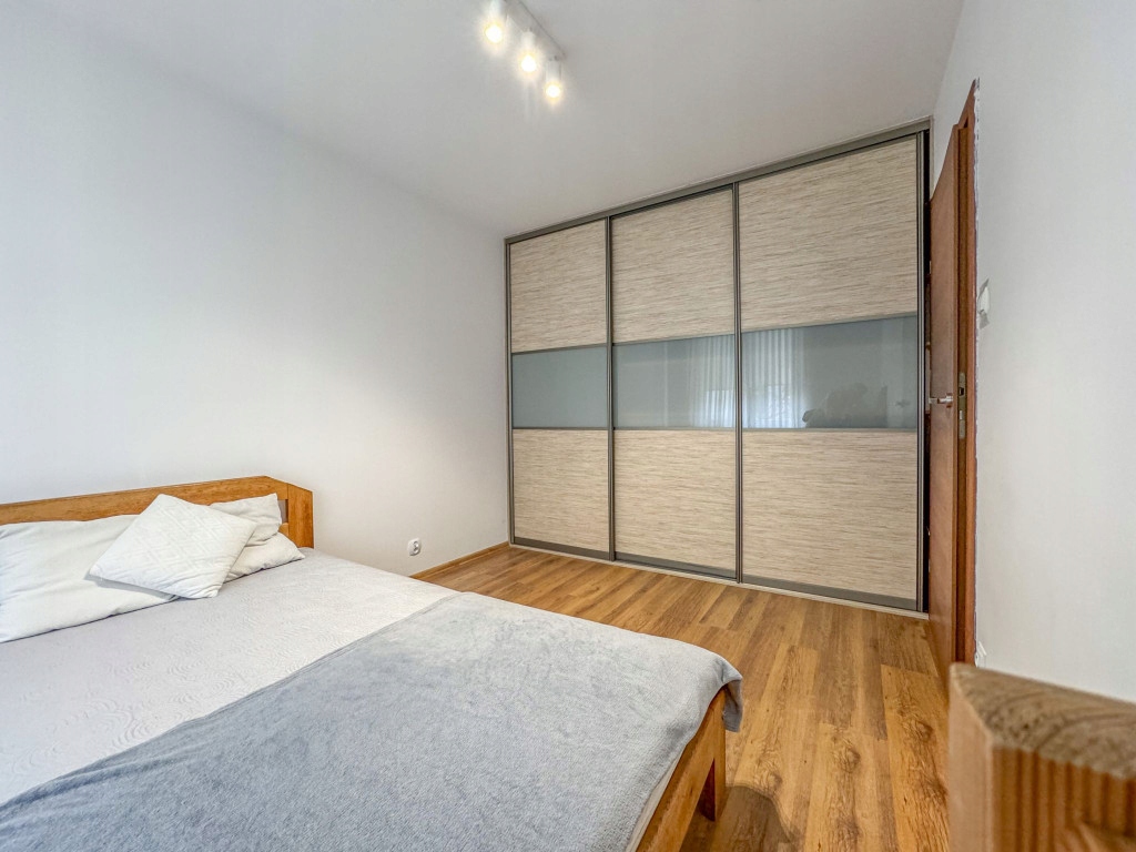 Drugi pokój pełni funkcję małej sypialni. Znajduje się tu pojedyncze łóżko, mały regał oraz obszerna trzy częściowa szafa typu Komandor z przesuwnymi drzwiami.