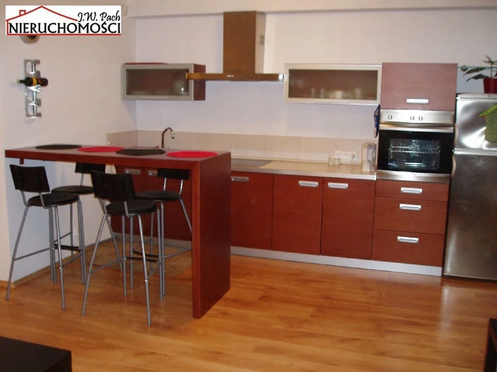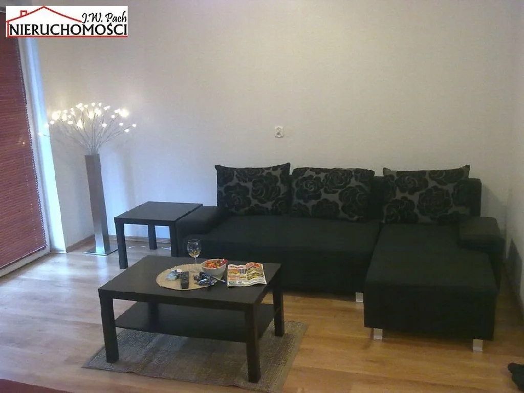 W salonie pozostaje sofa i stolik,kuchnia umeblowana i wyposażona z lodówką.