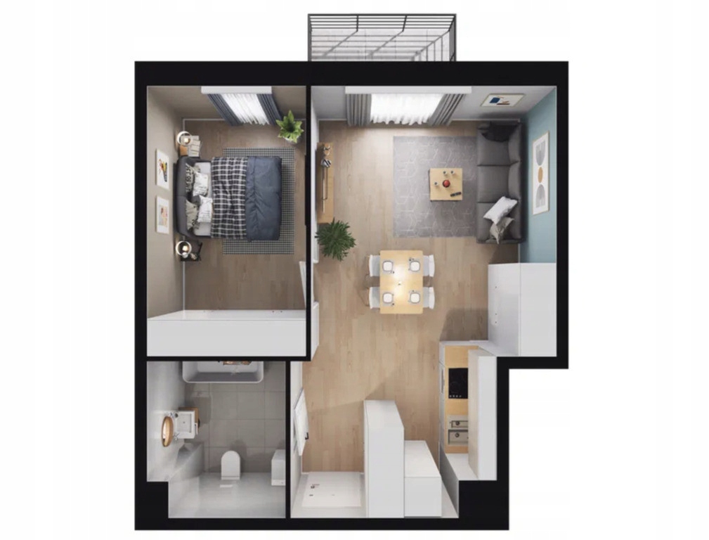 * Nieruchomość składa się z salonu z aneksem oraz sypialni, holu, łazienki z WC