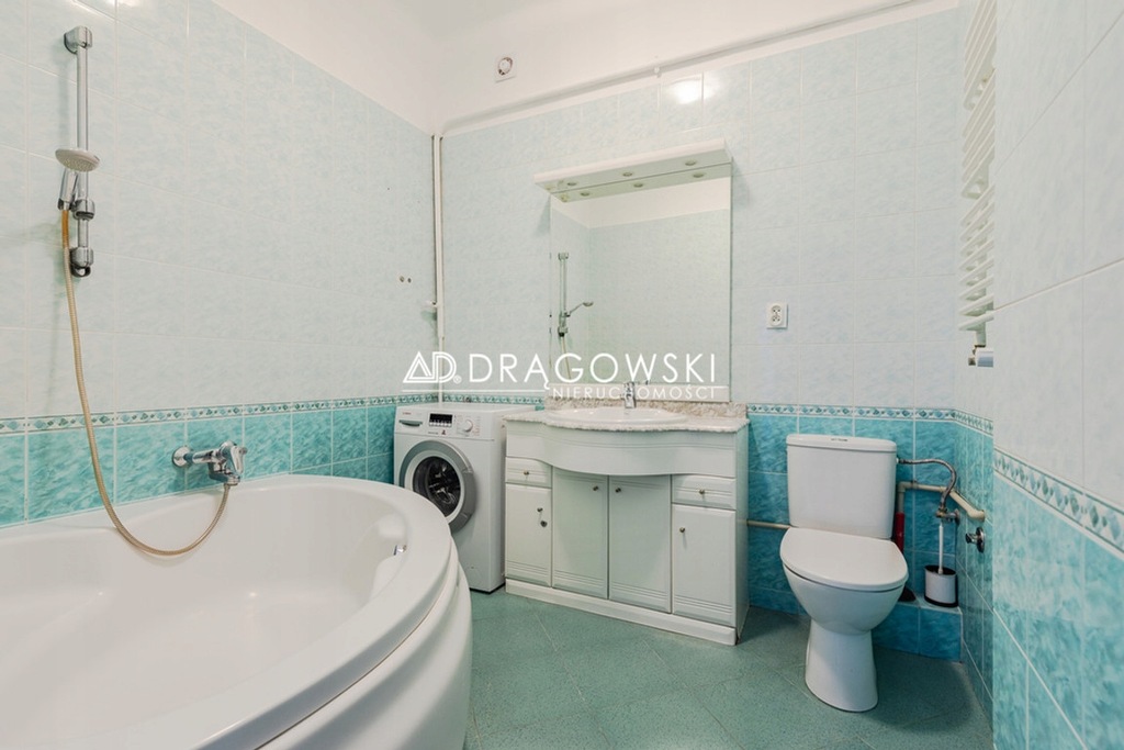 Łazienka o powierzchni 5,61 m2 z wanną narożną, pralką WC.