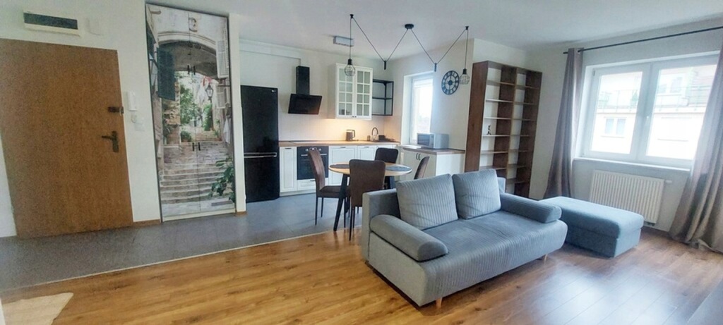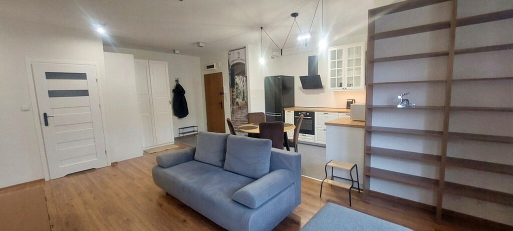 Na przyszłego najemcy czeka wyjątkowy salon wraz z otwartą i dobrze wyposażoną kuchnią, sypialnia, oraz łazienką z pralnią i osobno WC, duże szafy w przedpokoju oraz sypialni