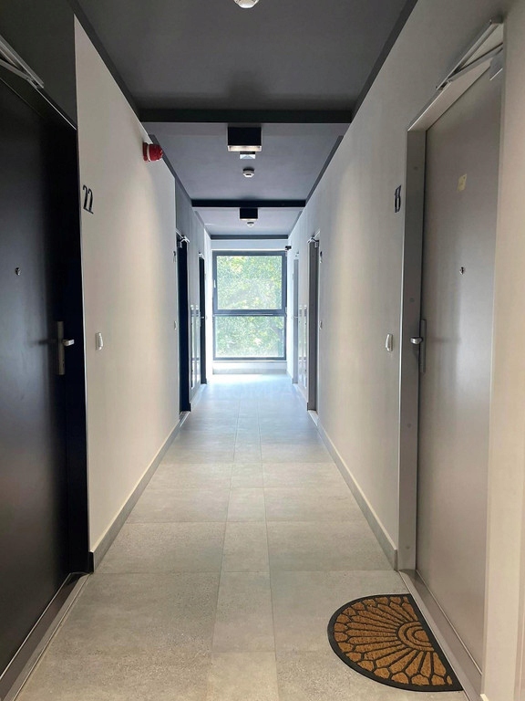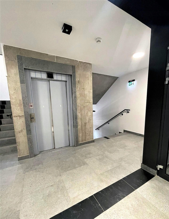 Mieszkanie mieści się na pierwszym piętrze w czteropiętrowym budynku z 2021 roku.
