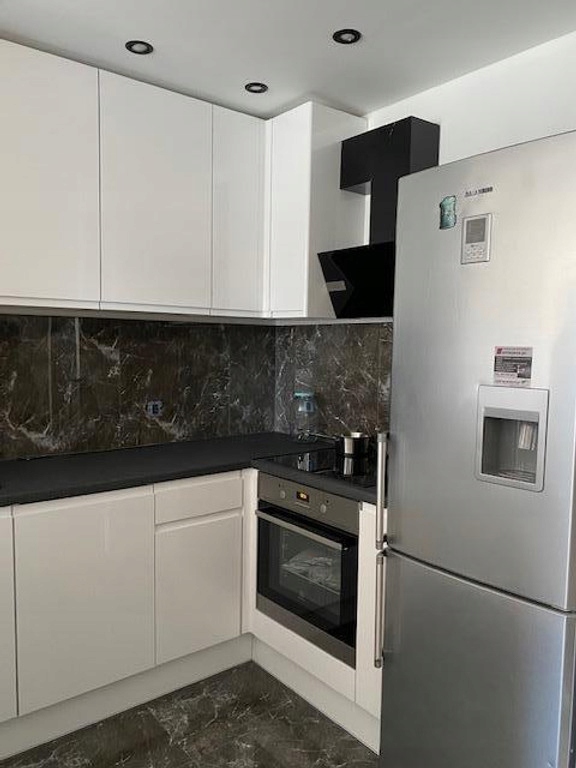 Kuchnia w formie aneksu wyposażona w w nowy sprzęt AGD płyta indukcyjna piekarnik ,lodówka , zmywarka, okap.