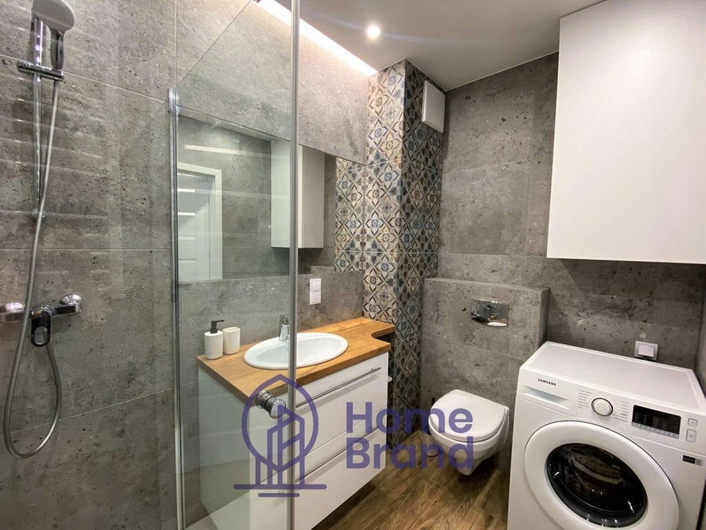 - łazienka - WC, prysznic, pralka, kosz na pranie, szafki do przechowywania