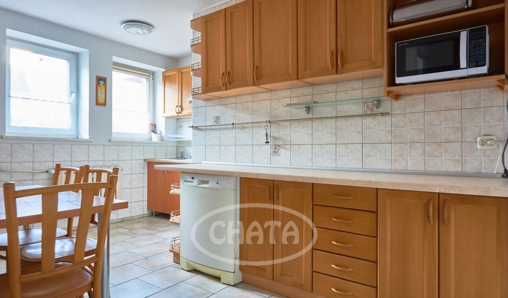 Kuchnia jest wyposażona w dużą lodówkę z zamrażarką, kuchenkę mikrofalową, płytę gazową, zmywarkę. Prawie wszystkie elementy wyposażenia są nowe.