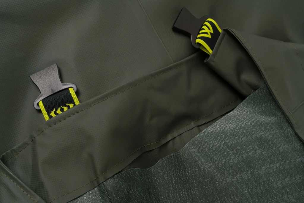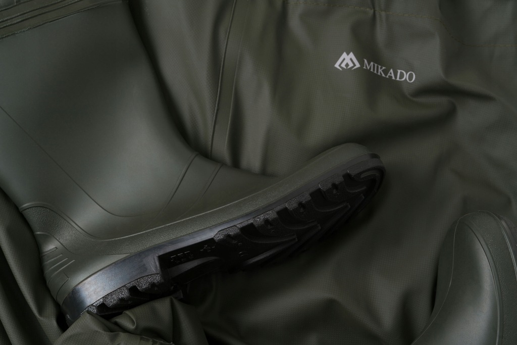 Spodniobuty wykonane z wysokiej jakości materiału poliestrowego. Nowoczesna technologia zgrzewania szwów, gwaratnuje stuprocentową wodoodporność i dużą odporność na uszkodzenia. Kalosze wyposażono w podeszwę z bieżnikiem, co gwarantuje dużą stabilność Materiał: Flyer-Tex o grubości 0,38 mm – lekka wodoodporna tkanina powlekana nowej generacji. Elastyczna i komfortowa w niekorzystnych warunkach i niskich temperaturach.