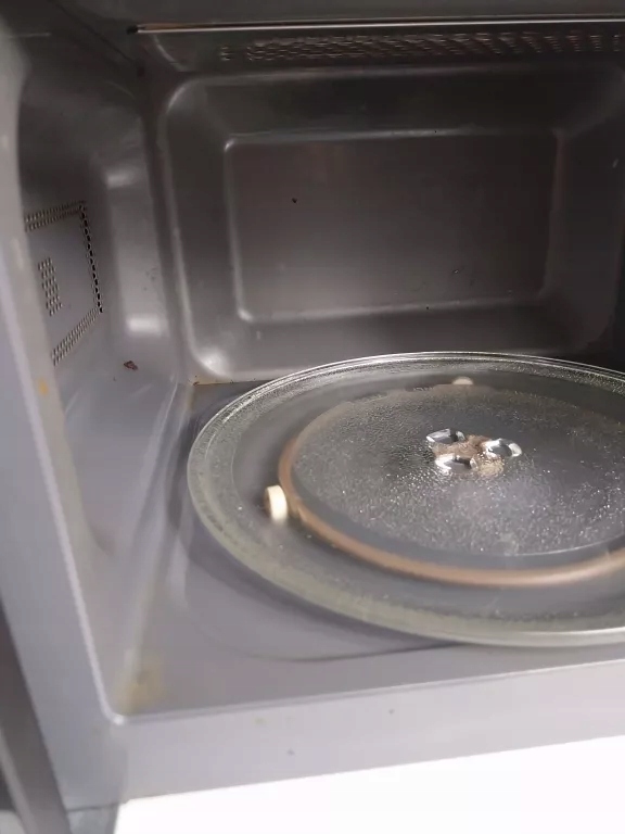 Mikrofala nosi widoczne na zdjęciach ślady użytkowania w postaci zabrudzeń i rys