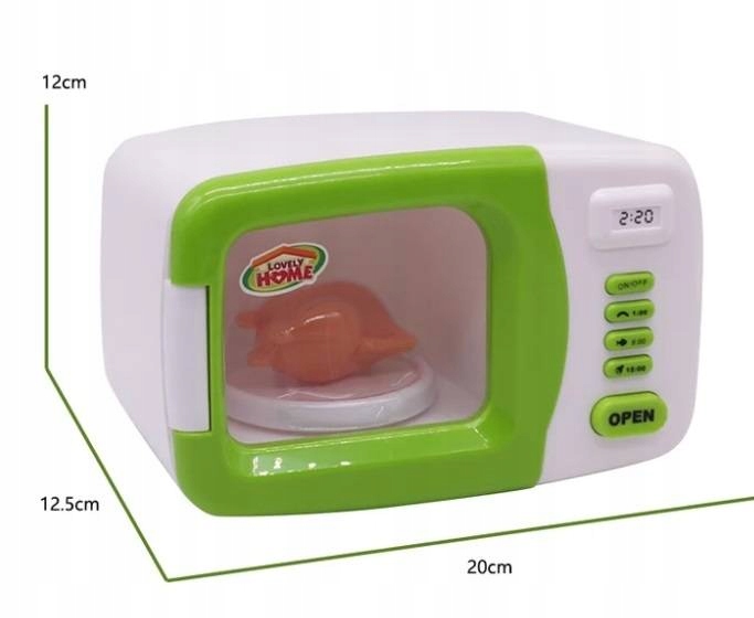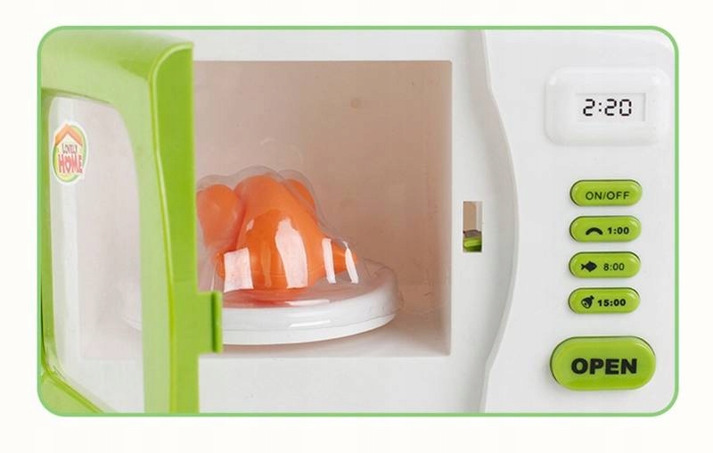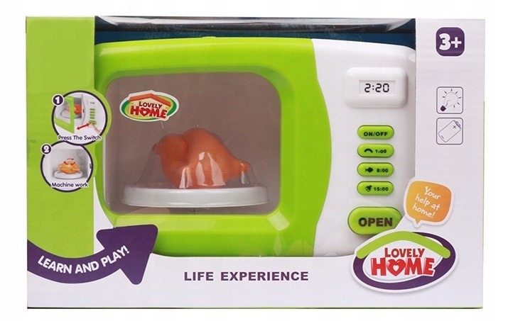 Przedstawiamy Państwu fantastycznie odwzorowaną biało-zieloną mikrofalówkę z serii "Lovely home - life experience". Dbałość wykonania oraz realistyczny wygląd gwarantuje pełną satysfakcje i super zabawę! Zabawka została wykonana z wysokiej jakości bezpiecznych materiałów. Sprzęt jest lekki i niewielkich rozmiarów - idealny do zabawy dla małych rączek.