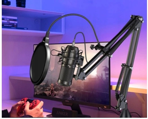 - Aokeo zestaw Mikrofon USB, 192 kHz/24-bit, do gier PC, ze stojakiem na ramię, uchwytem amortyzującym, filtrem pop, osłoną piankową, do podcastów, przesyłania strumieniowego, studia, karaoke, nagrywania