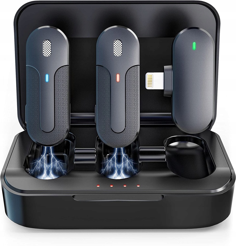 Bezprzewodowe mikrofony lavalier dla iPhone z zestawem 2 bezprzewodowych mikrofonów Lapel Mic Plug-Play z ładowarką