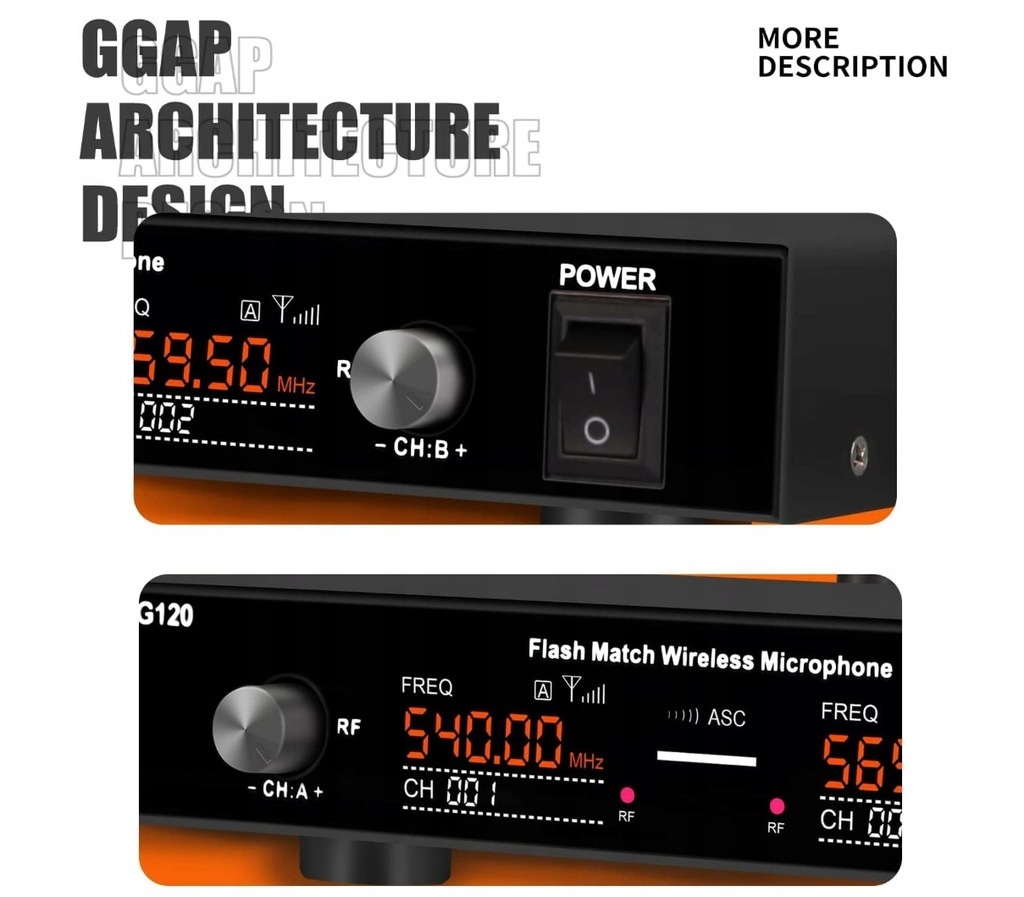 - Wybierz częstotliwość bezprzewodową: Zakres częstotliwości mikrofonu bezprzewodowego wynosi 823–832 MHz.