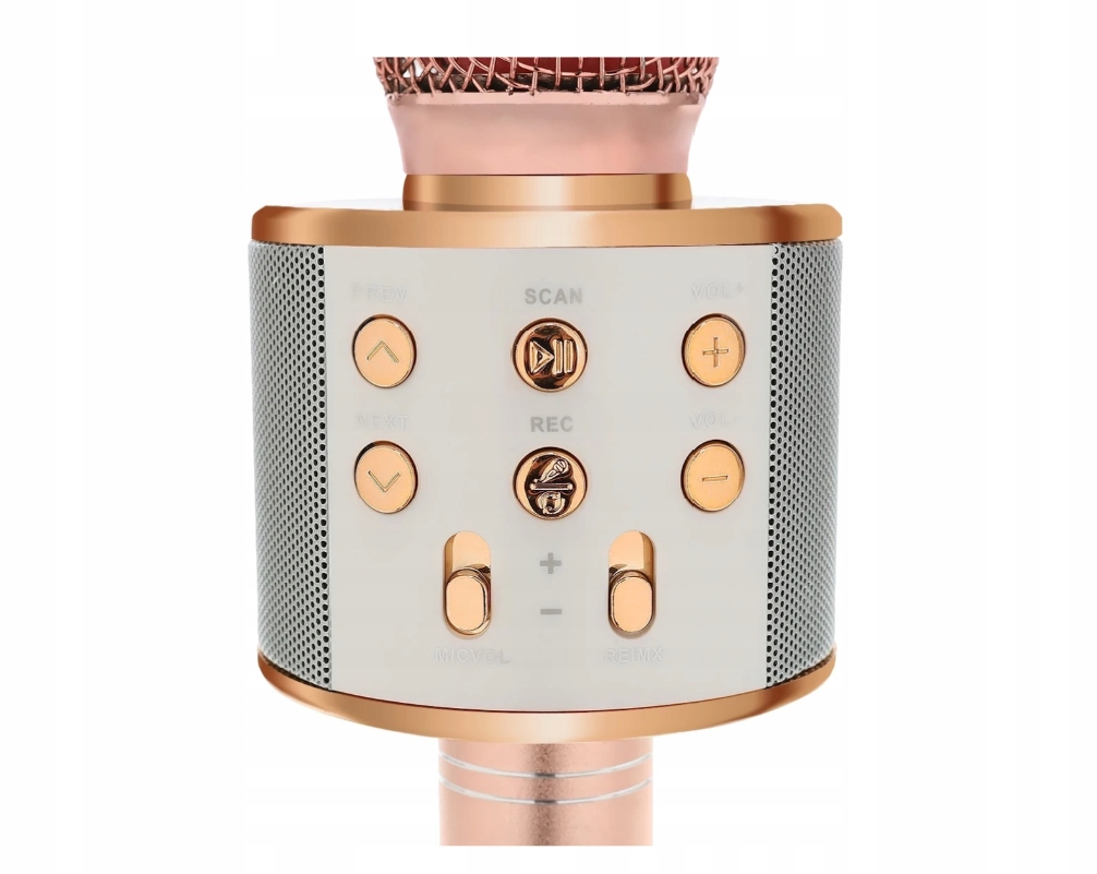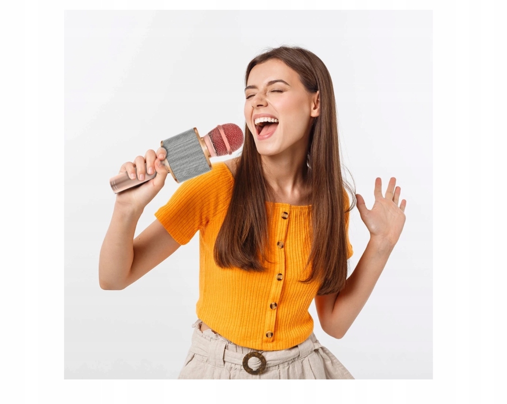 - MULTI FUNKCJONALNY – mikrofon z głośnikiem, umożliwia odsłuchiwanie oraz nagrywanie piosenek; łączy się z urządzeniami zewnętrznymi (tj. telefon, tablet, telewizor SMART z systemem operacyjnym ANDROID lub IOS) poprzez Bluetooth 4.0 lub znajdujący się w zestawie kabel. Po sparowaniu dźwięk będzie odtwarzany w głośnikach mikrofonu. W urządzeniu trzeba włączyć muzykę, aplikację karaoke lub filmik na YouTube, wówczas w głośnikach usłyszymy muzykę, a sparowane urządzenie wyświetli tekst. Mikrofon świetnie poradzi sobie również w nagrywaniu wywiadów, podcastów radiowych, streamowaniu i wielu innych sytuacjach.