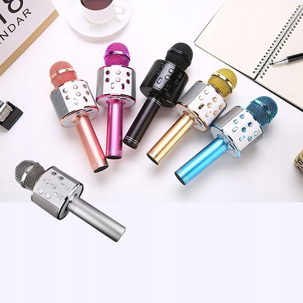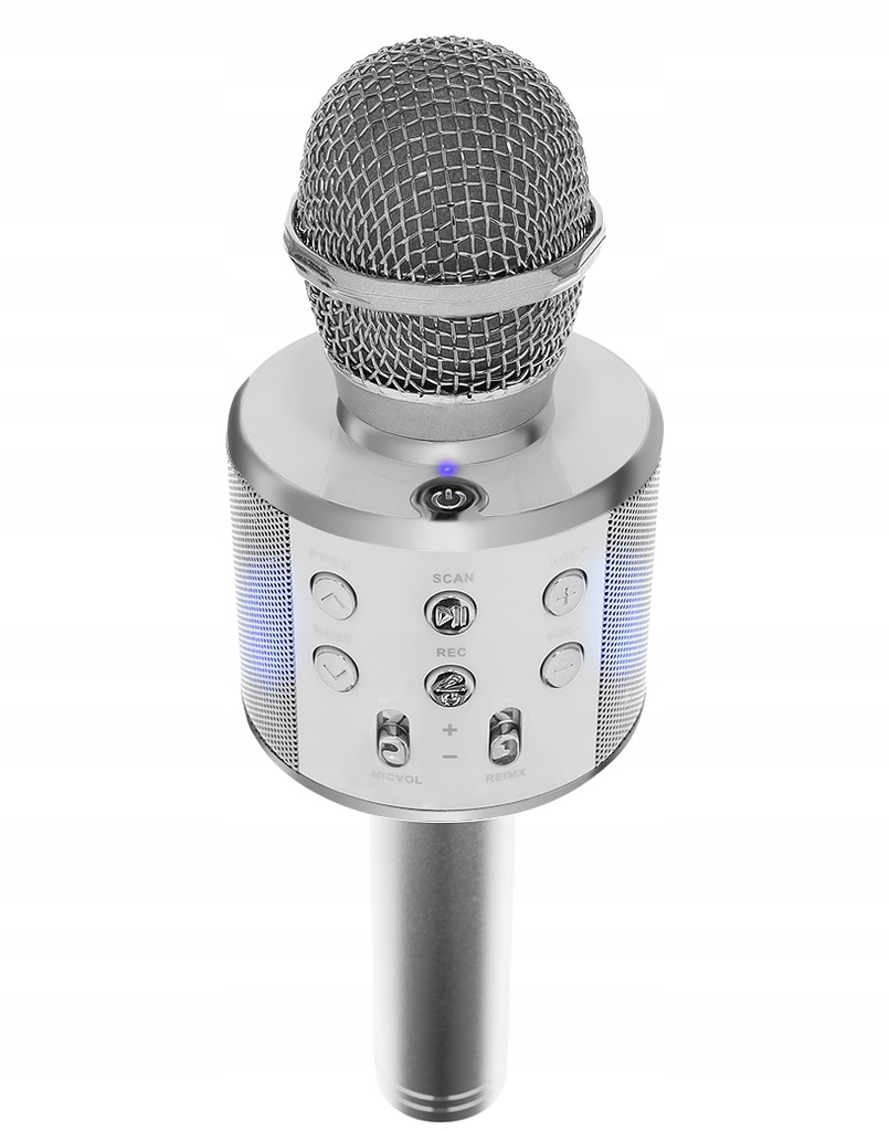 BEZPRZEWODOWY MIKROFON KARAOKE BLUETOOTH Z WBUDOWANYM GŁOŚNIKIEM W KOLORZE SREBRNYM