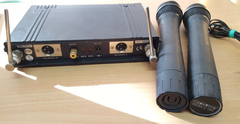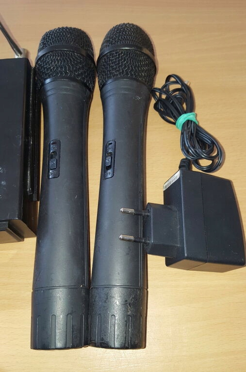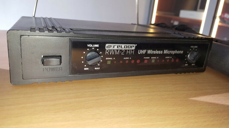 - 1 x stacjonarny 2-kanałowy odbiornik z zasilaczem 2 x bezprzewodowy mikrofon Reloop z nadajnikiem Symetryczne i asymetryczne wyjścia Blokada szumów Kontrola głośności