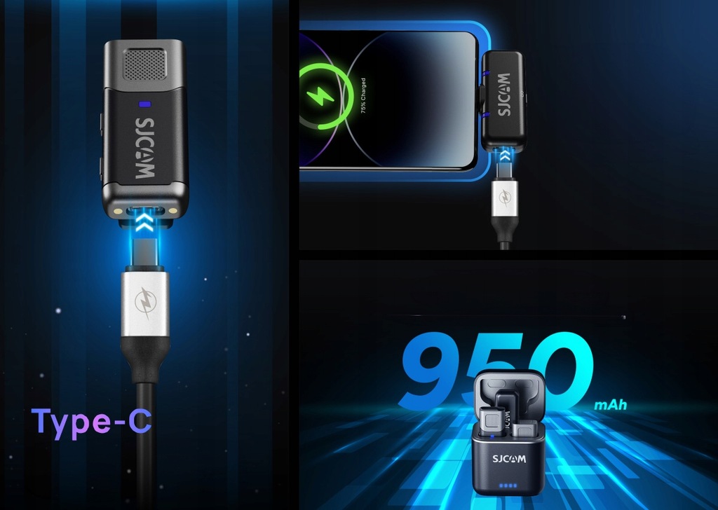 Mikrofon bezprzewodowy SJCAM M3 TYPE-C, 4x7h (28h), WiFi, nowy