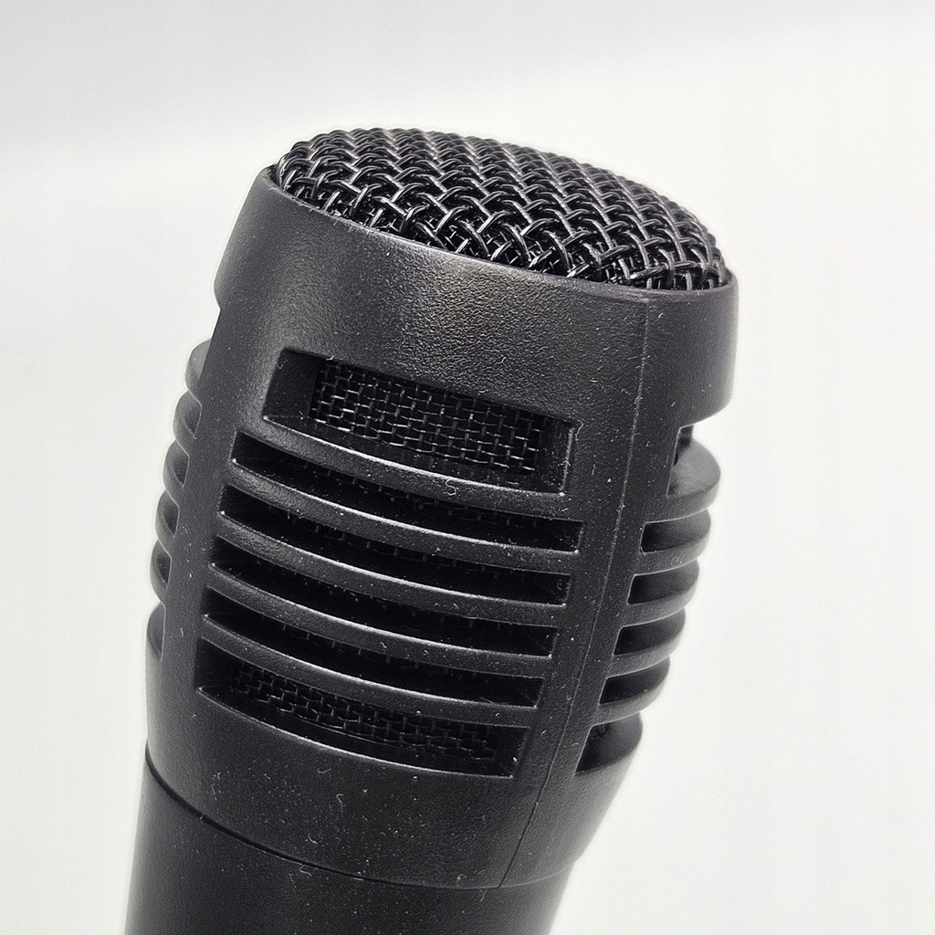 - Uniwersalny, przewodowy mikrofon ręczny z osłoną z tworzywa sztucznego.