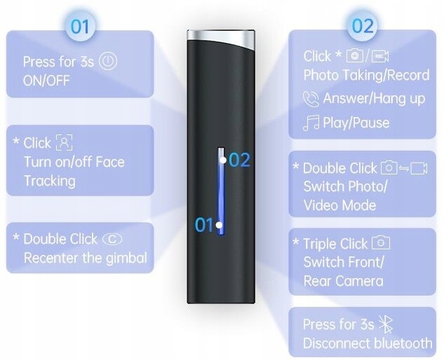 Mikrofon Hohem służy również jako pilot zdalnego sterowania do robienia zdjęć, nagrywania wideo, sterowania gimbalem i odbierania połączeń telefonicznych. Jest kompatybilny z gimbalem iSteady X/iSteady Mobile+ oraz aplikacjami Hohem Pro/Hohem Gimbal.
